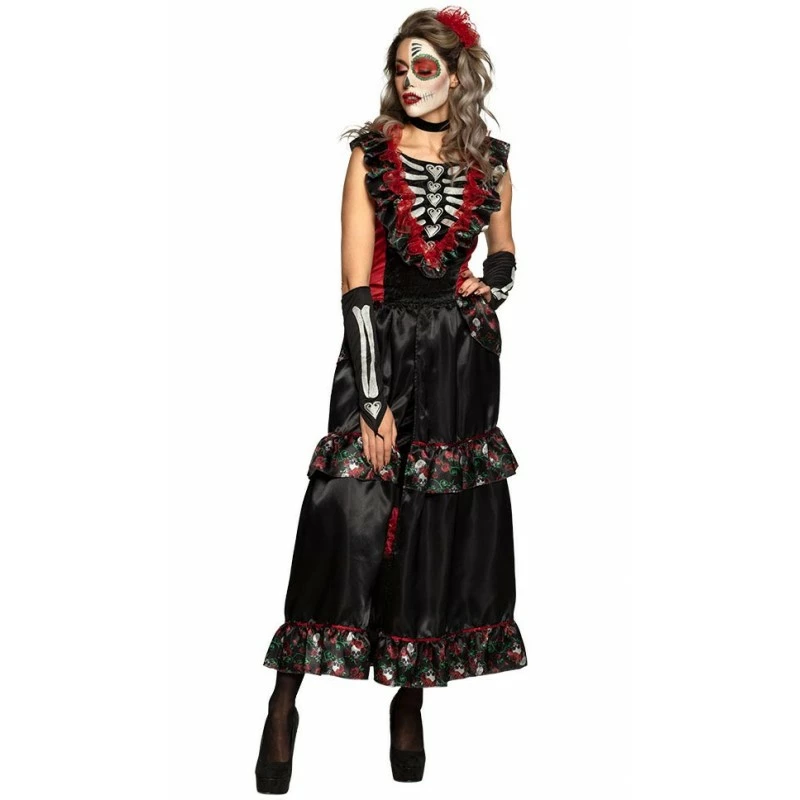 Si vous souhaitez rendre votre tenue du Dia de los Muertos encore plus réaliste, il est possible de l’accessoiriser avec une perruque, une paire de collants, des leggings, un bracelet, un collier, une paire de boucles d’oreilles, un masque ou encore un kit de maquillage Dia de los Muertos.