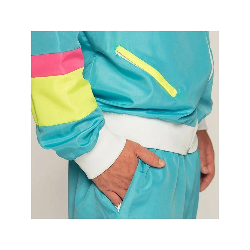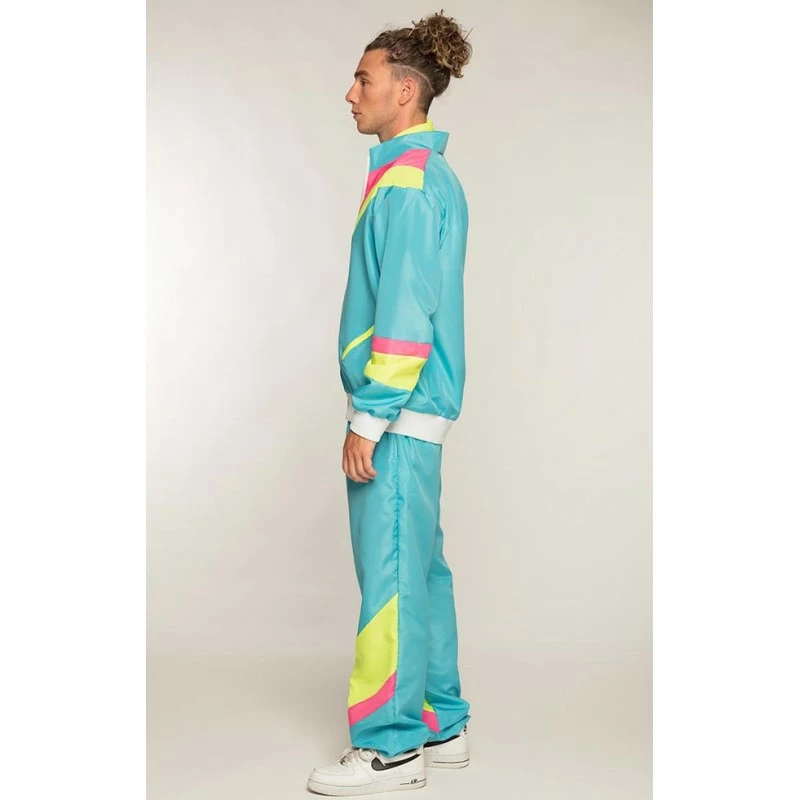 Ce costume existe en plusieurs couleurs (violet et ?), c’est l’idéal si vous êtes plusieurs à vous déguiser sur les années 80. Bien évidemment, nous proposons aussi ce modèle en version femme avec des couleurs différentes. Cela peut être une bonne idée pour se déguiser en couple. Ces tenues peuvent être personnalisées avec des accessoires comme des perruques, des bijoux fluo, une fausse radio à mettre sur l’épaule ou encore une sacoche banane. Prévoyez une paire de baskets pour compléter le costume.