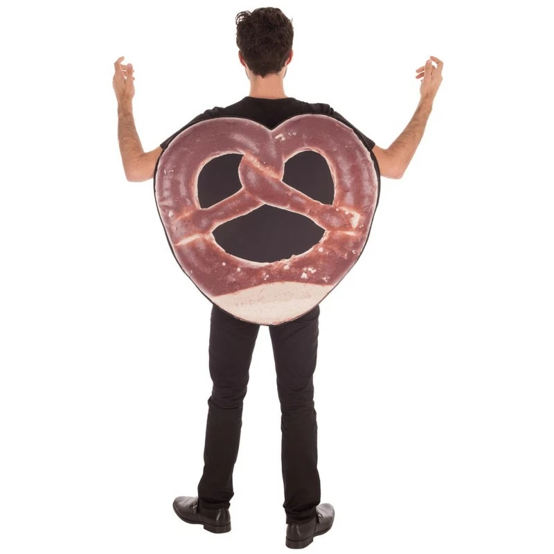Ce déguisement de bretzel est assez réaliste, il semble parfaitement cuit, on peut apercevoir le sel dessus et la coupure dans le bas du bretzel. Pour accompagner votre déguisement bretzel, il est indispensable d’arriver à la soirée avec un ou plusieurs bretzels.