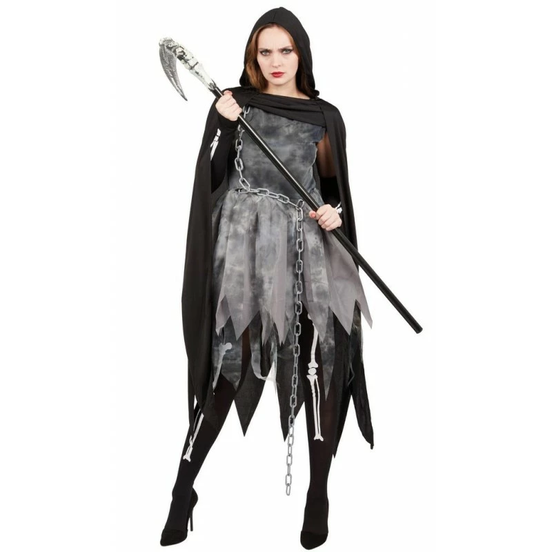 Si vous souhaitez rendre ce déguisement faucheuse encore plus réaliste, il est possible de l’accessoiriser avec une faux, une paire de bottes noires et du maquillage pour le visage et éventuellement les mains. Pour incarner parfaitement votre personnage, adoptez une attitude sombre (au moins au début de la soirée).
